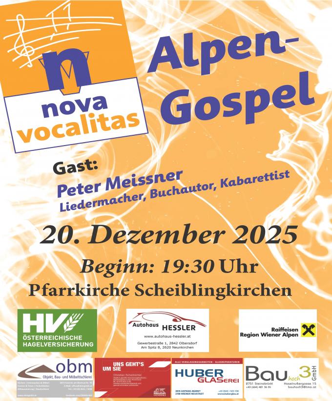 Als Highlight wird dieses Jahr wieder unser ALPEN-GOSPEL (20. Dezember 2025, 19:30 Uhr, Pfarrkirche Scheiblingkirchen; als Gast: Peter Meissner) stattfinden.